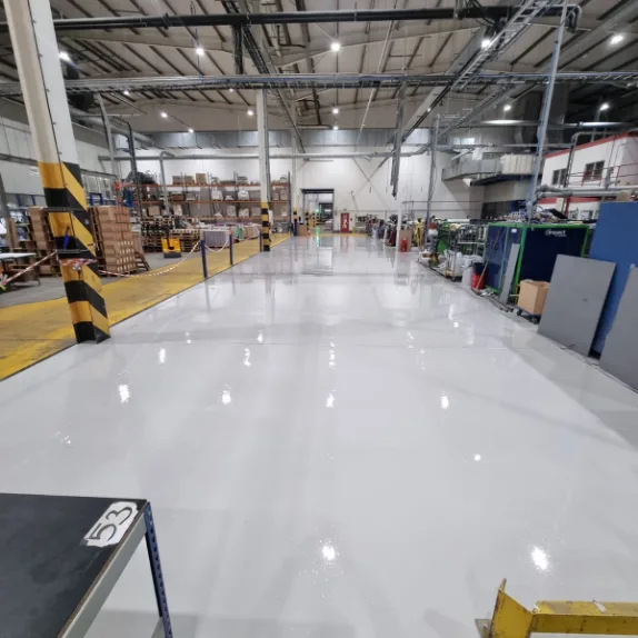 Resin flooring offers a wide range of benefits that make it exceptionally well-suited to the tough conditions found in manufacturing and industrial plant environments. It withstands heavy machinery and traffic without damage, reducing downtime and costs. Its seamless, non-porous surface supports hygiene standards in the manufacturing of food, pharma, and electronics by preventing dirt and bacteria build-up.